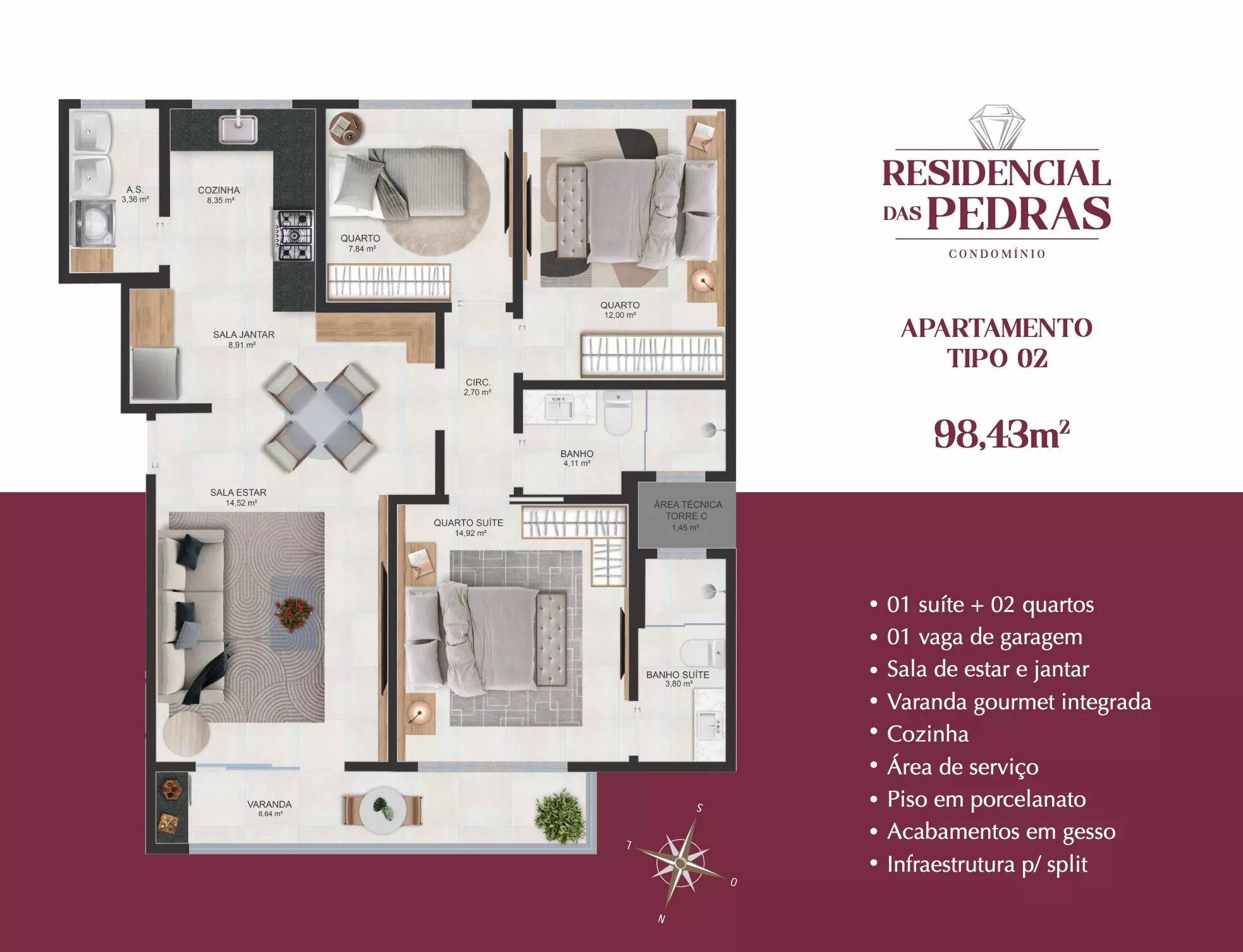 Descubra o verdadeiro significado de qualidade de vida. O Residencial das Pedras é o melhor e mais exclusivo empreendimento de Venda Nova. Poucas unidades disponíveis, aproveite.